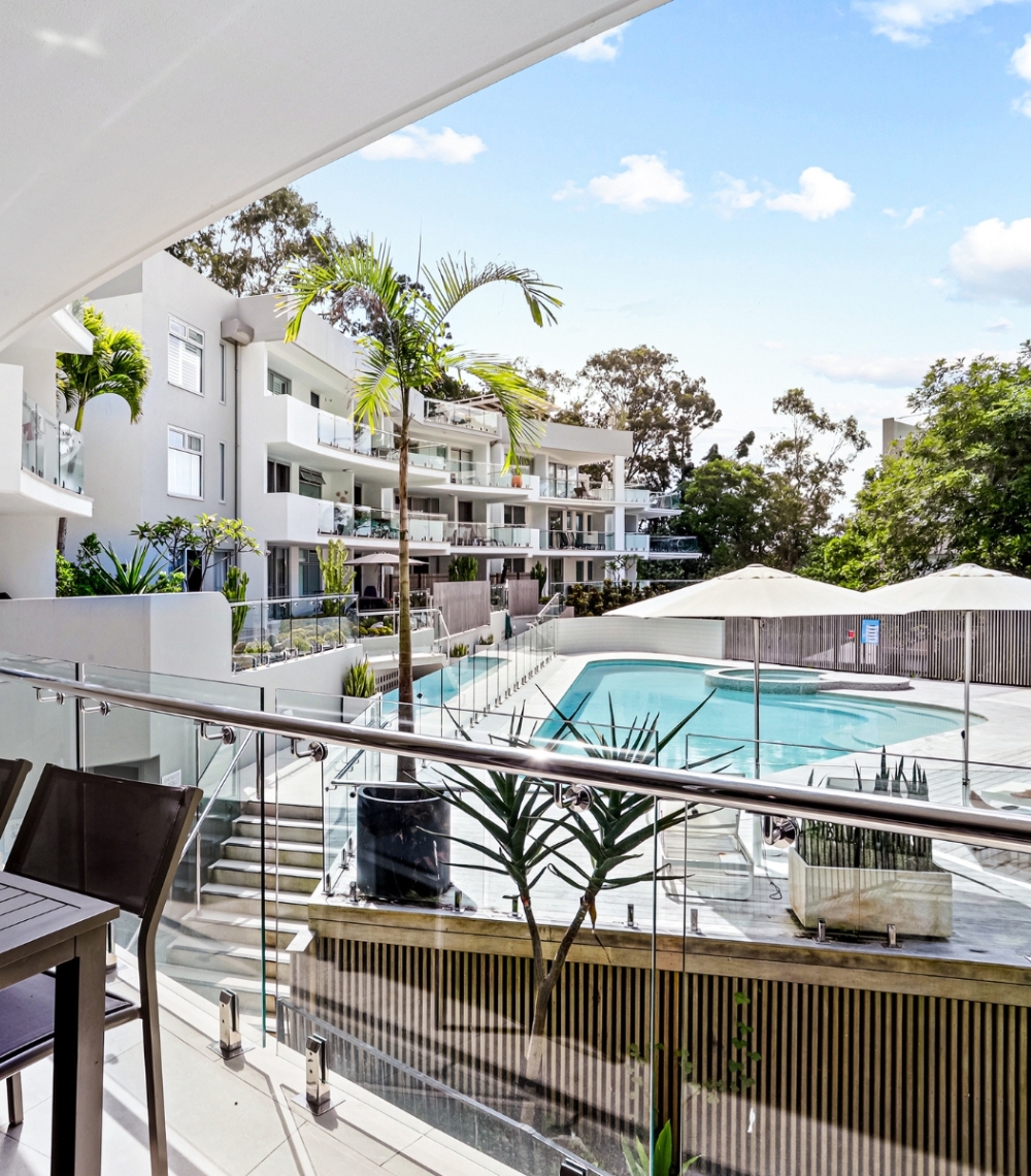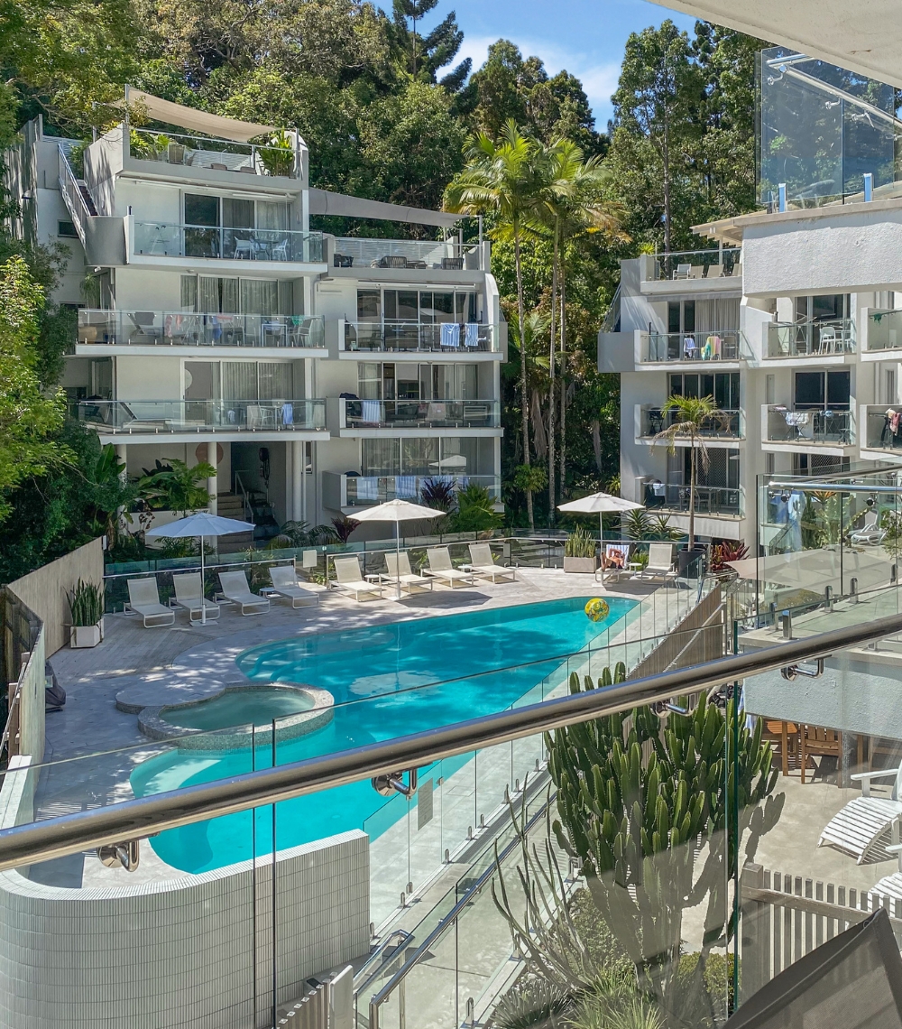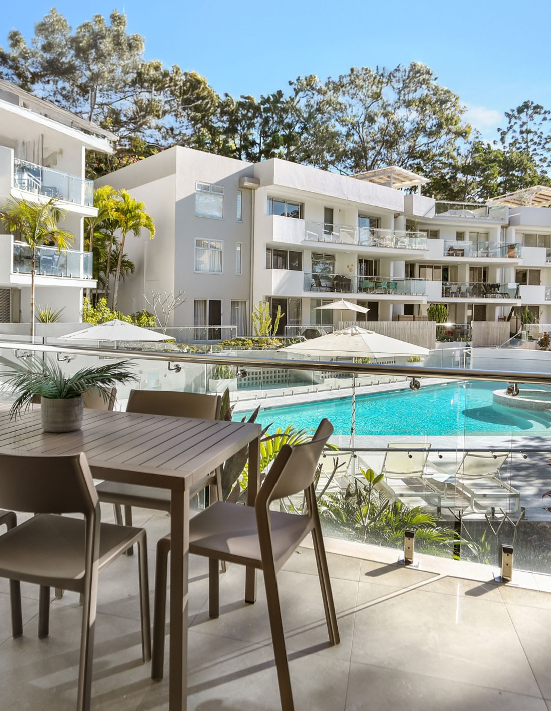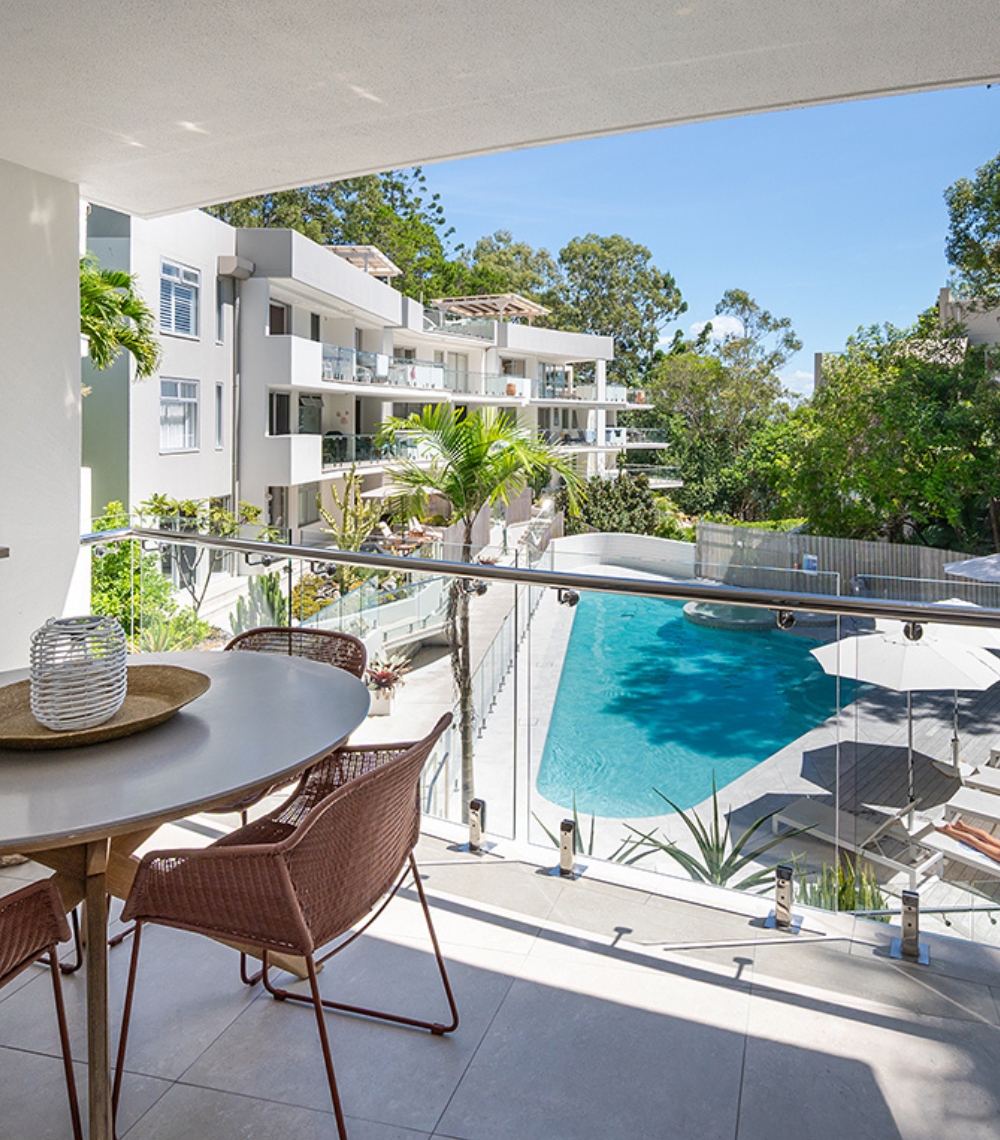 Many apartments at The Cove Noosa Resort offer beautiful ocean views over Little Cove Beach and Laguna Bay.
