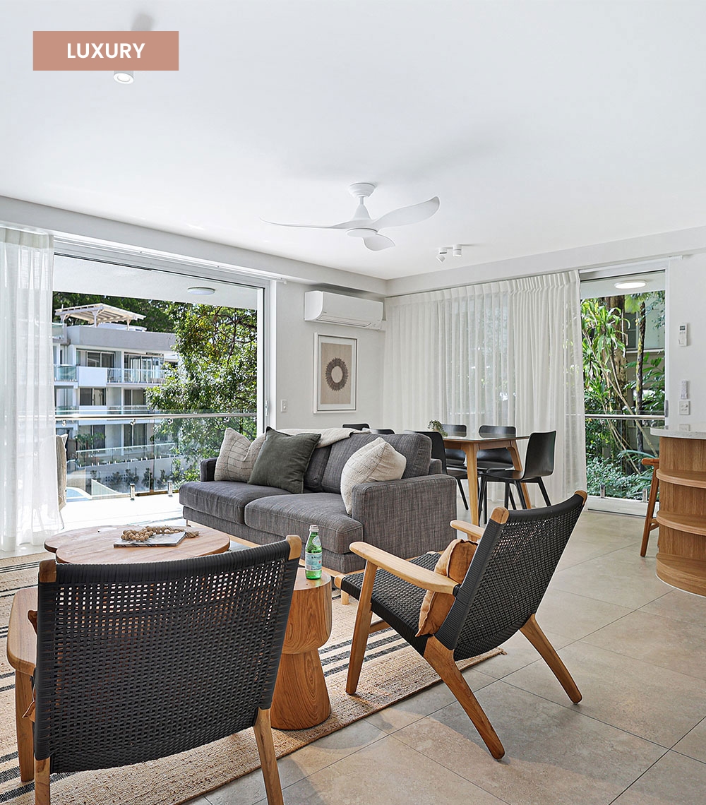 Relax around the pool or catch some waves and rays on Little Cove Beach. Indulge in Noosa’s nearby boutique shopping and restaurants or get active with national park walks and surfing.
